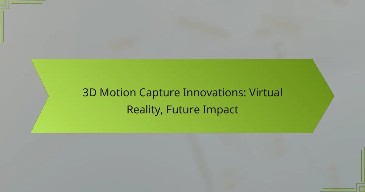 3D motion capture is revolutionizing virtual reality (VR) by providing highly accurate and realistic representations of human movement, enhancing user immersion and interaction. This technology captures the nuances of physical actions, allowing for more engaging and lifelike experiences in various applications.