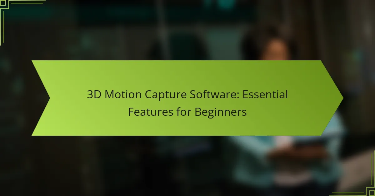 Beginners should prioritize user-friendly interfaces, real-time tracking capabilities, compatibility with various hardware, and support for multiple file formats when selecting 3D motion capture software. These features ensure a smoother learning curve and enhance the overall motion capture experience.