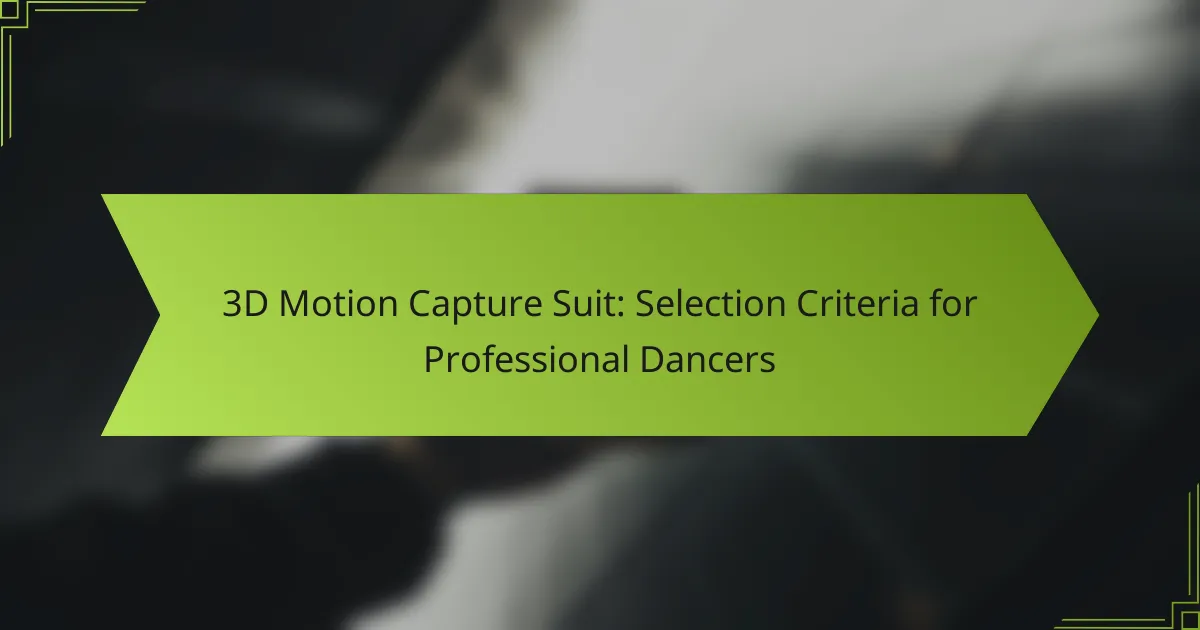 When selecting a 3D motion capture suit, professional dancers must prioritize accuracy, comfort, and usability to enhance their performance analysis and choreography development. Key criteria include sensor precision, fit, software compatibility, and wireless functionality, all of which play a vital role in optimizing training and performance. By focusing on features like real-time feedback and durability, dancers can ensure a seamless motion capture experience that supports their artistic goals.