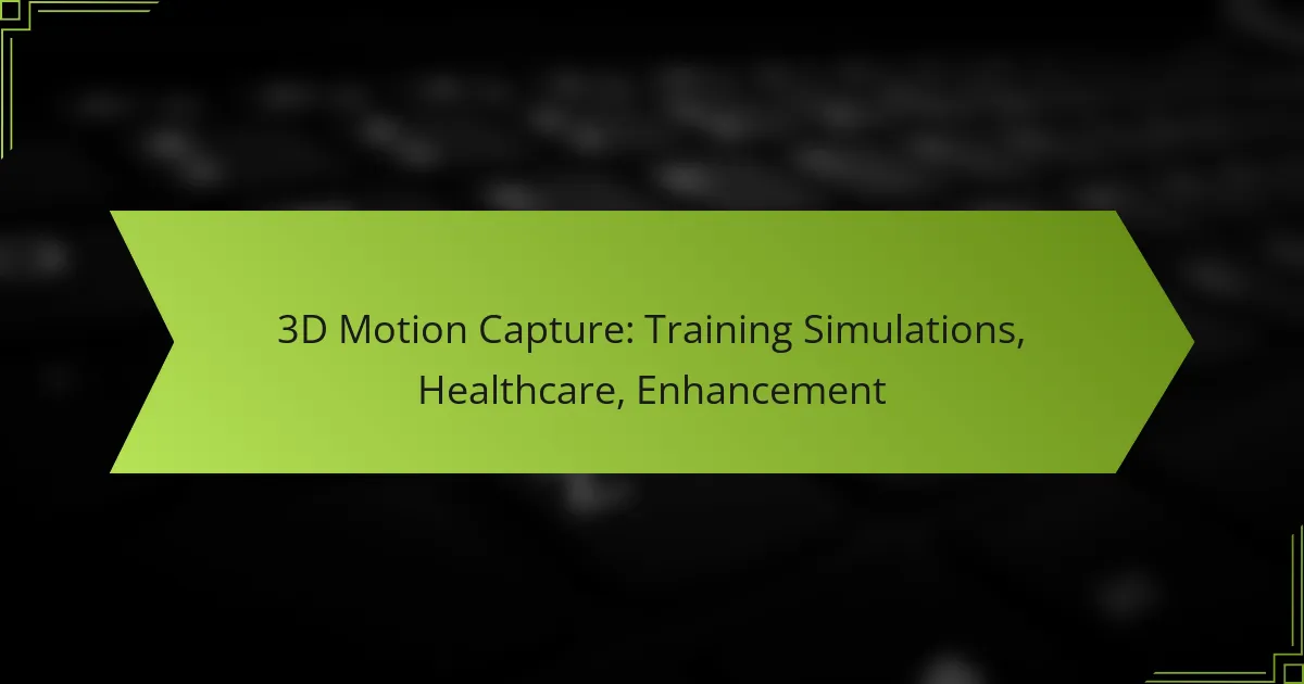 3D motion capture technology plays a crucial role in diverse fields such as training simulations and healthcare, offering enhanced realism and precision. By accurately recording human movement, it provides valuable insights that improve skill acquisition, diagnostics, and rehabilitation strategies. This innovative approach not only boosts performance but also tailors interventions to meet individual needs, ultimately leading to better outcomes across various applications.